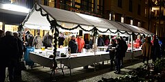 Trotz dauerhaften Nieselregens war auch der Weihnachtsmarkt am 6. Dezember in der Gürtelstraße 33 gut besucht. Im großen Saal wurden verschiedene kleine Geschenkideen angeboten. An den Ständen im Freien gab es neben Bratwurst oder Pilzpfanne auch selbstgebackenen Kuchen, Liköre oder Honig. Wie in jedem Jahr hatten die Stiftungsmitarbeiterinnen und -mitarbeiter mit viel Liebe und Engagement die vorweihnachtliche Einstimmung auf die Festtage möglich gemacht.