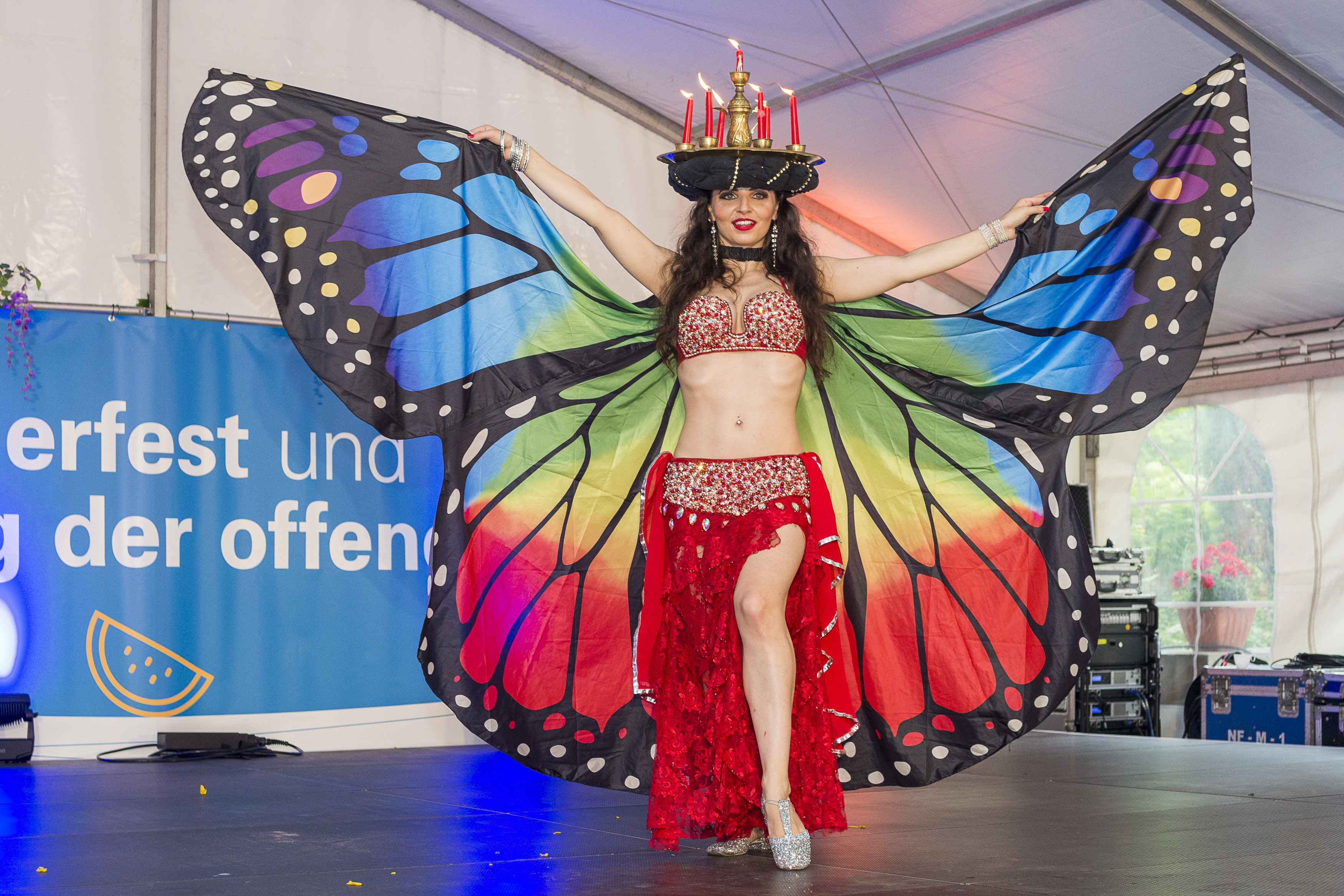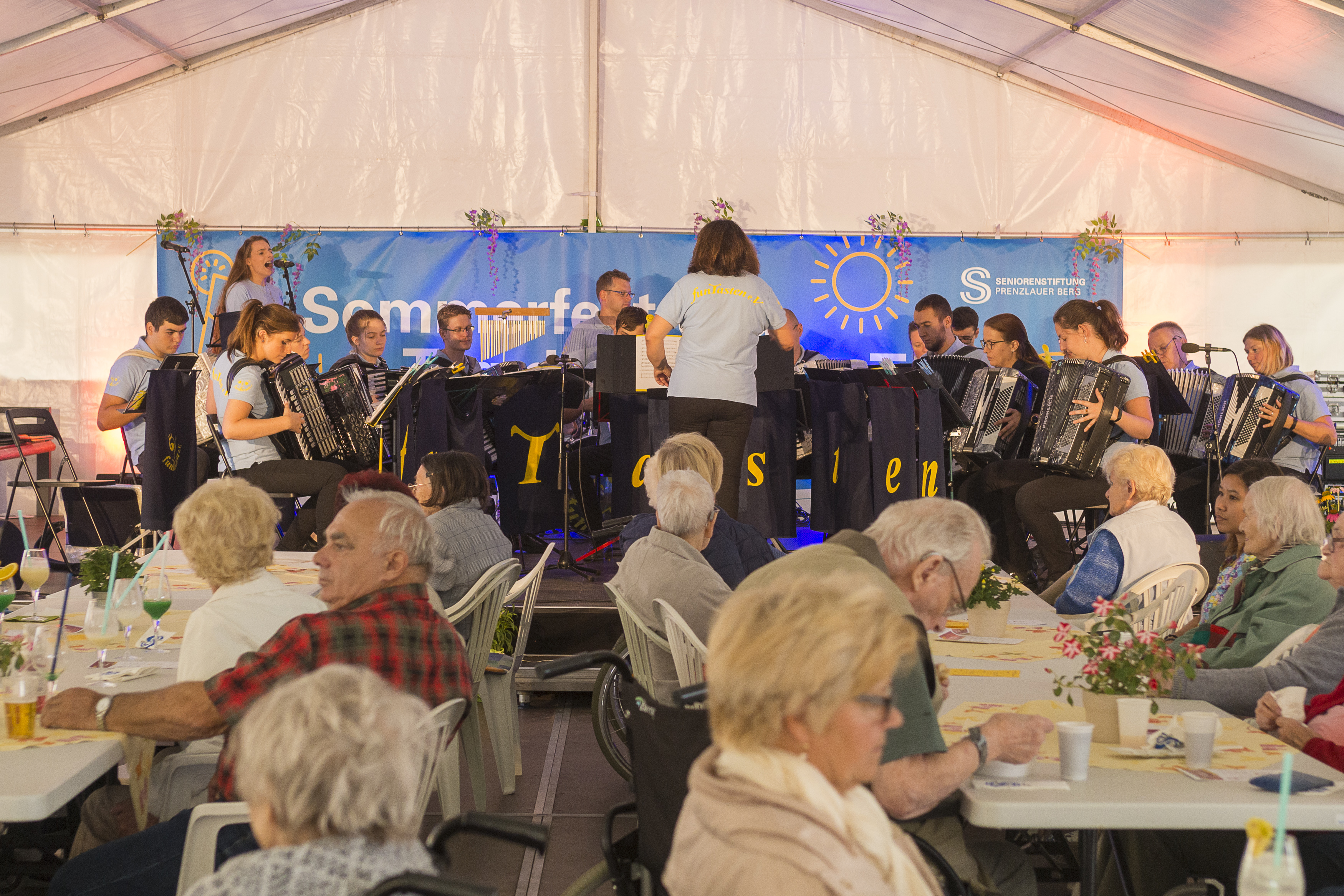 Nach dem musikalischen Auftakt durch die Swingband „Die Couchies“ begrüßte der Vorstandsvorsitzende Wilfried Brexel Gäste aus Bundes- und Landespolitik, wie die Bundestagsvizepräsidentin Petra Pau. Weitere Programmpunkte waren u.a. die Sängerin Mariamu, der Tenor Heiko Reissig, das Akkordeonorchester „FunTasten“, die Bauchtänzerin Viviana Tomai, Herr Balzer mit seinem Feuertheater sowie der Kinder- und Jugendzirkus Cabuwazi. Besonders unsere Bewohnerinnen und Bewohner freuten sich über den Auftritt der Sängerin Dagmar Frederic, die ihr Publikum mit Gesang und Anekdoten wunderbar unterhielt.